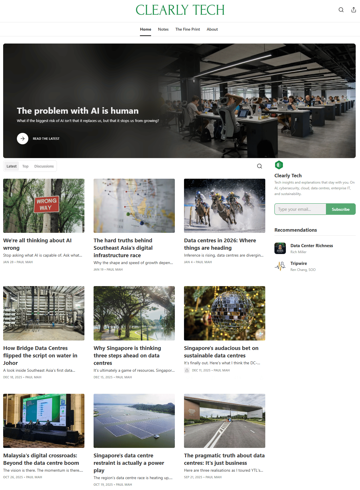 So here's my plan: Clearly Tech will track the infrastructure, energy transition, and research powering AI. That means more data centres, everything related to sustainability, and the top developments and debates in the space. And because I can't stand regurgitated content, expect my personal insights, behind-the-scenes takes, and the practical realities on the ground.